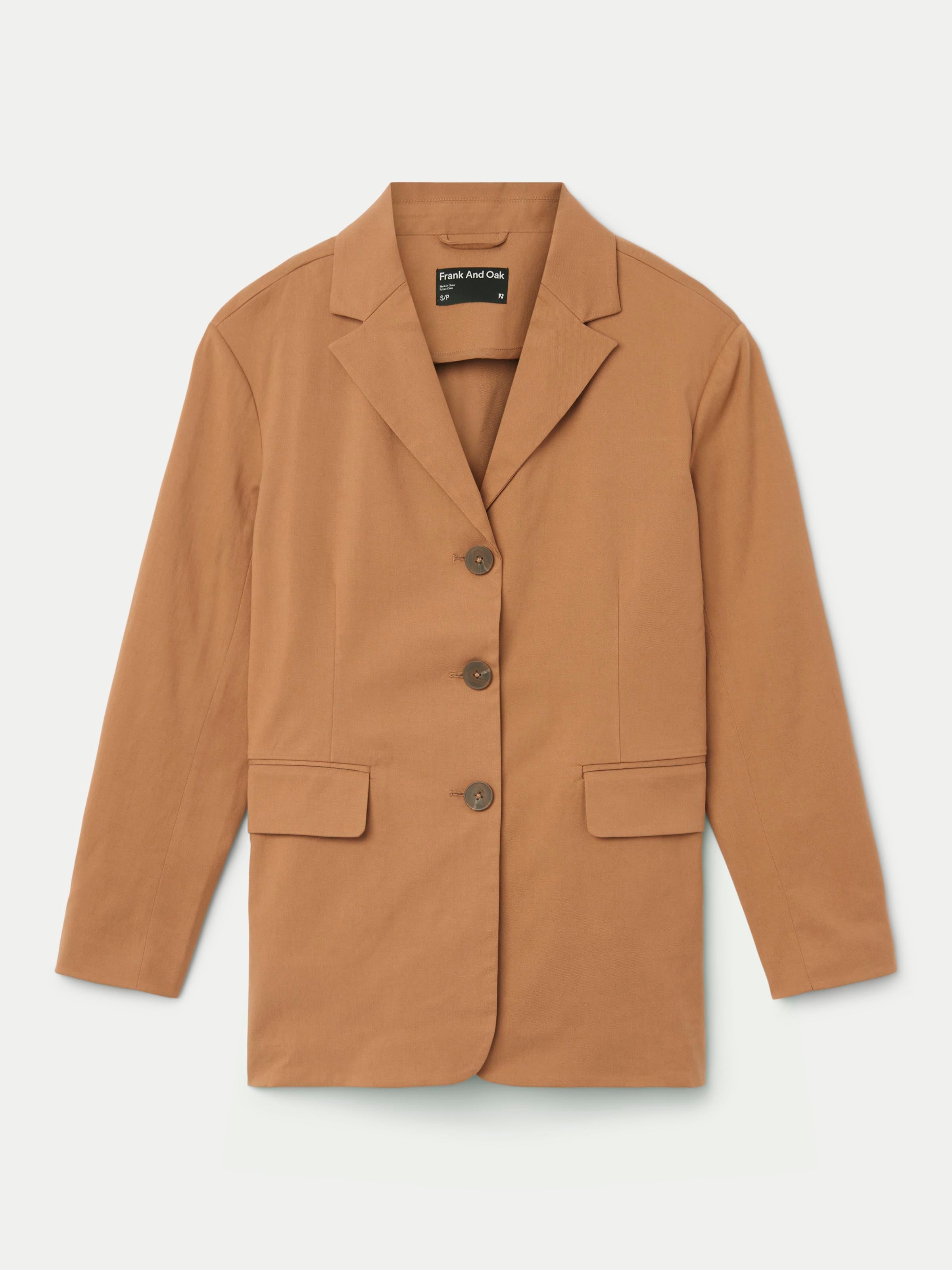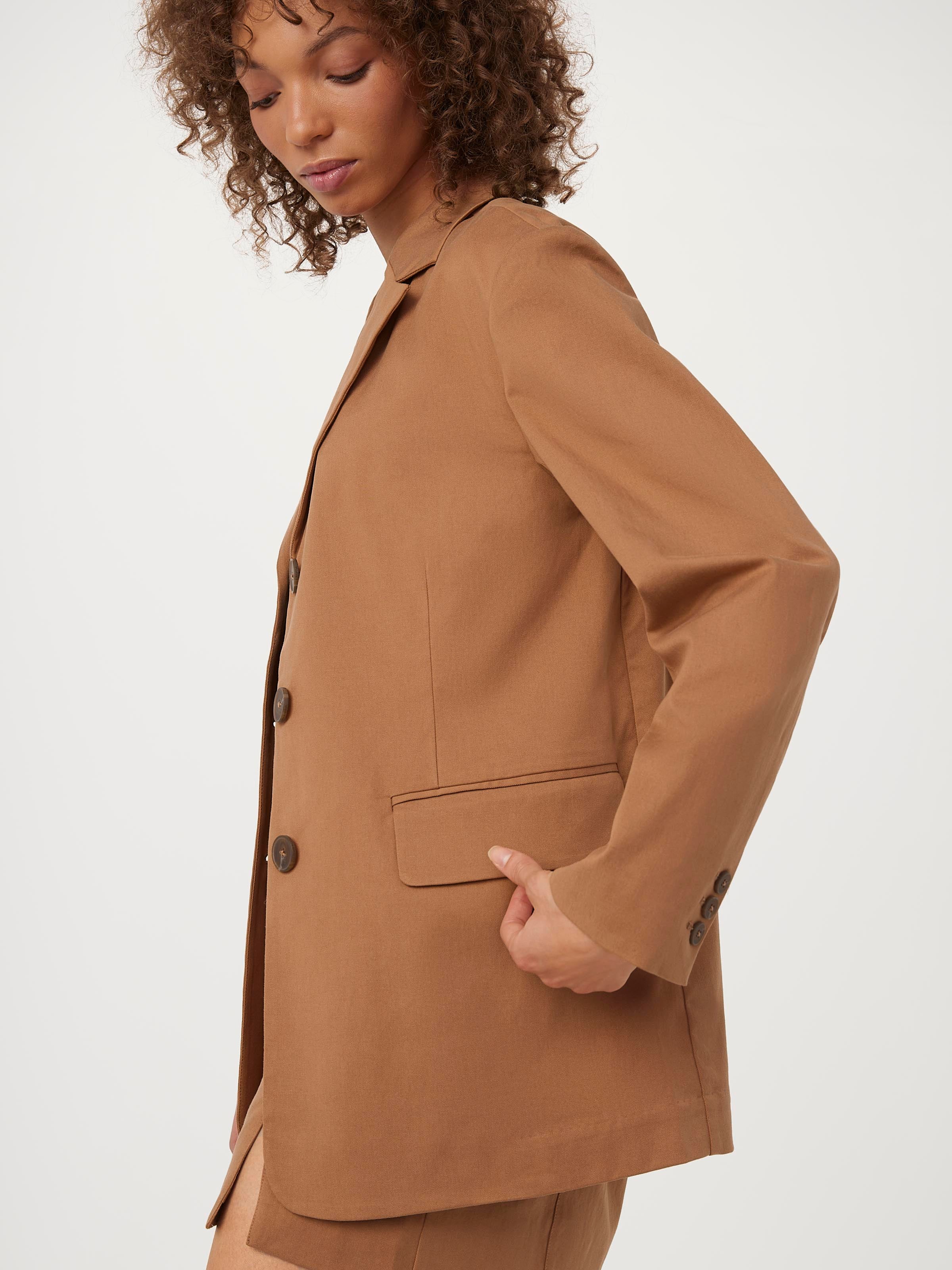 Elevate the everyday. This blazer is made from a fluid fabric in a blend of cotton and TENCEL™ Lyocell. Relaxed fit. Notch lapel. Single breasted. Flap pockets.