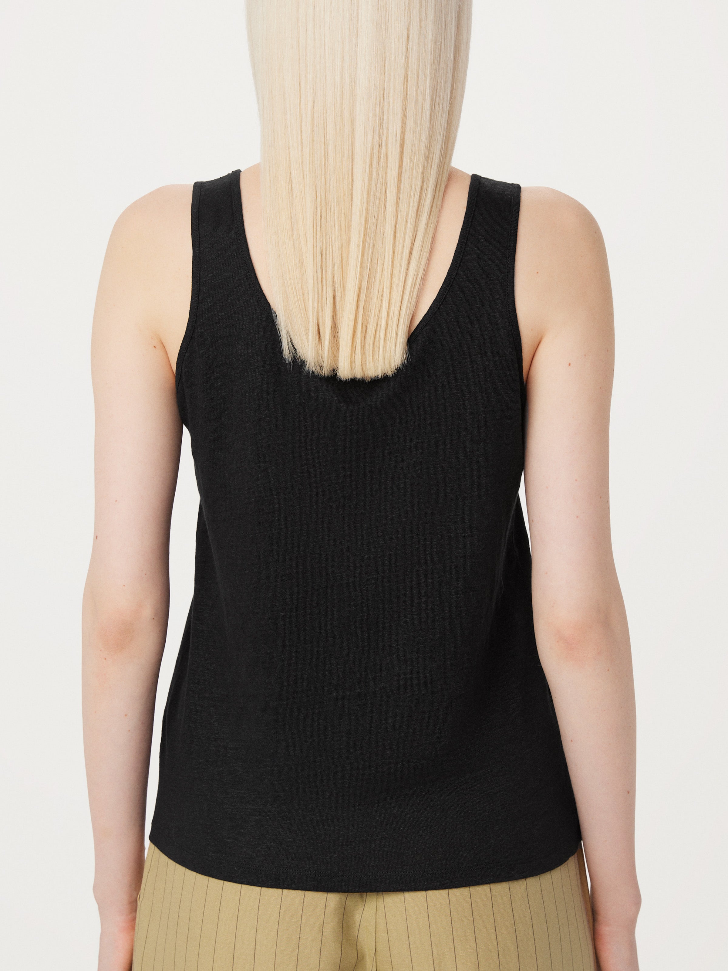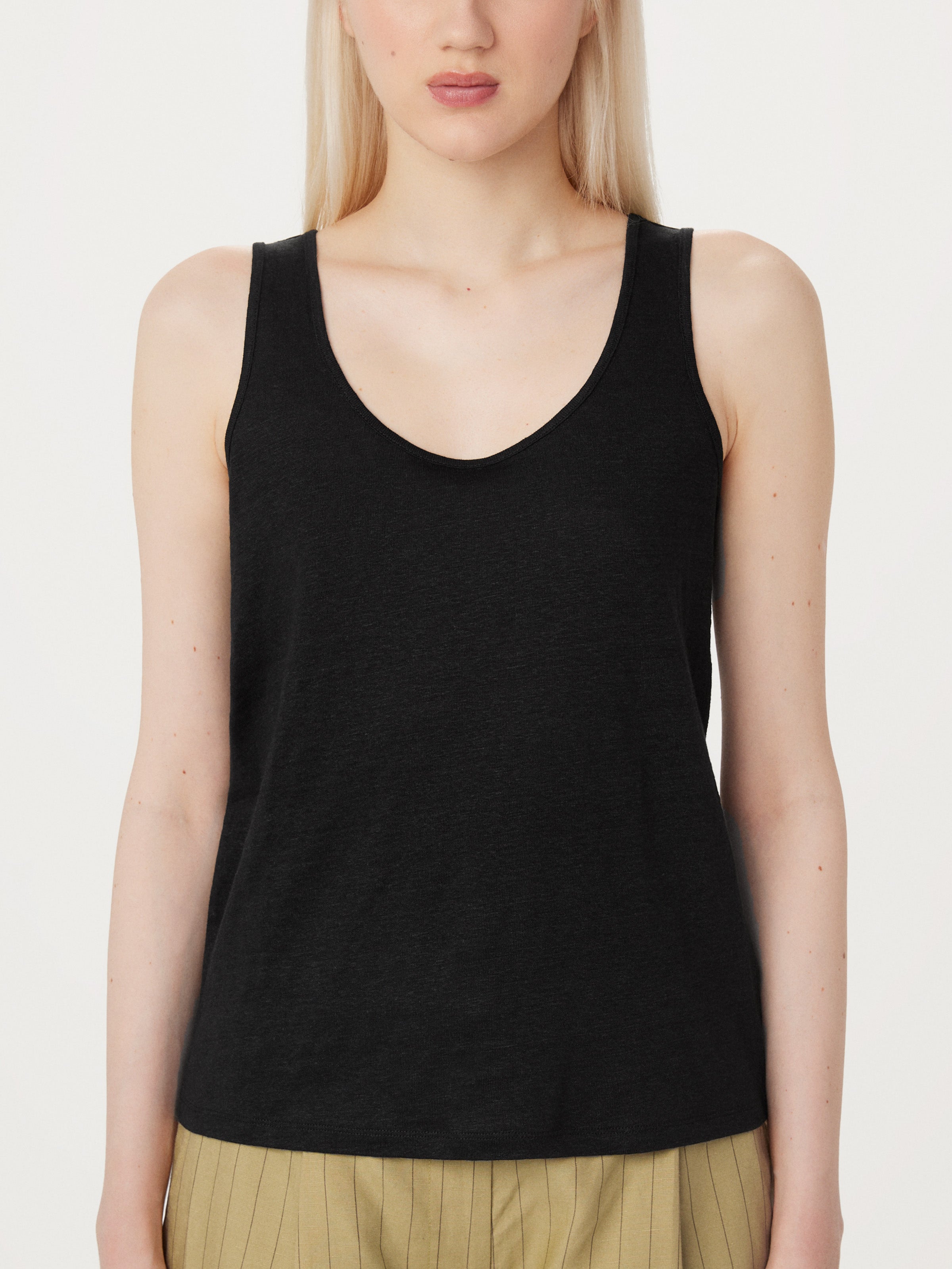 A summer must-have. This tank top is made from linen, one of the best fabrics for the hotter months. Features a U-neckline at the front and back. Relaxed fit. Sleeveless.