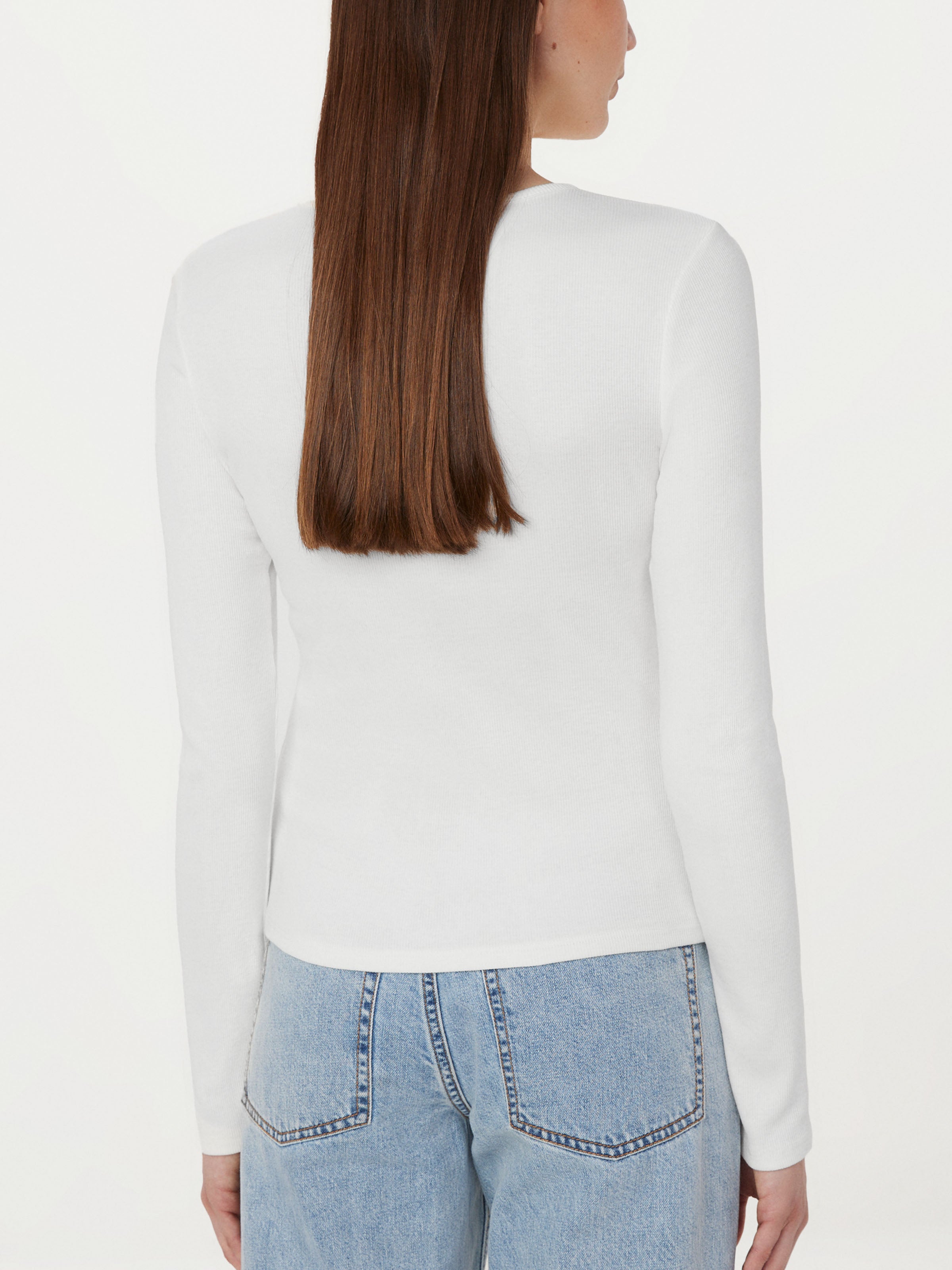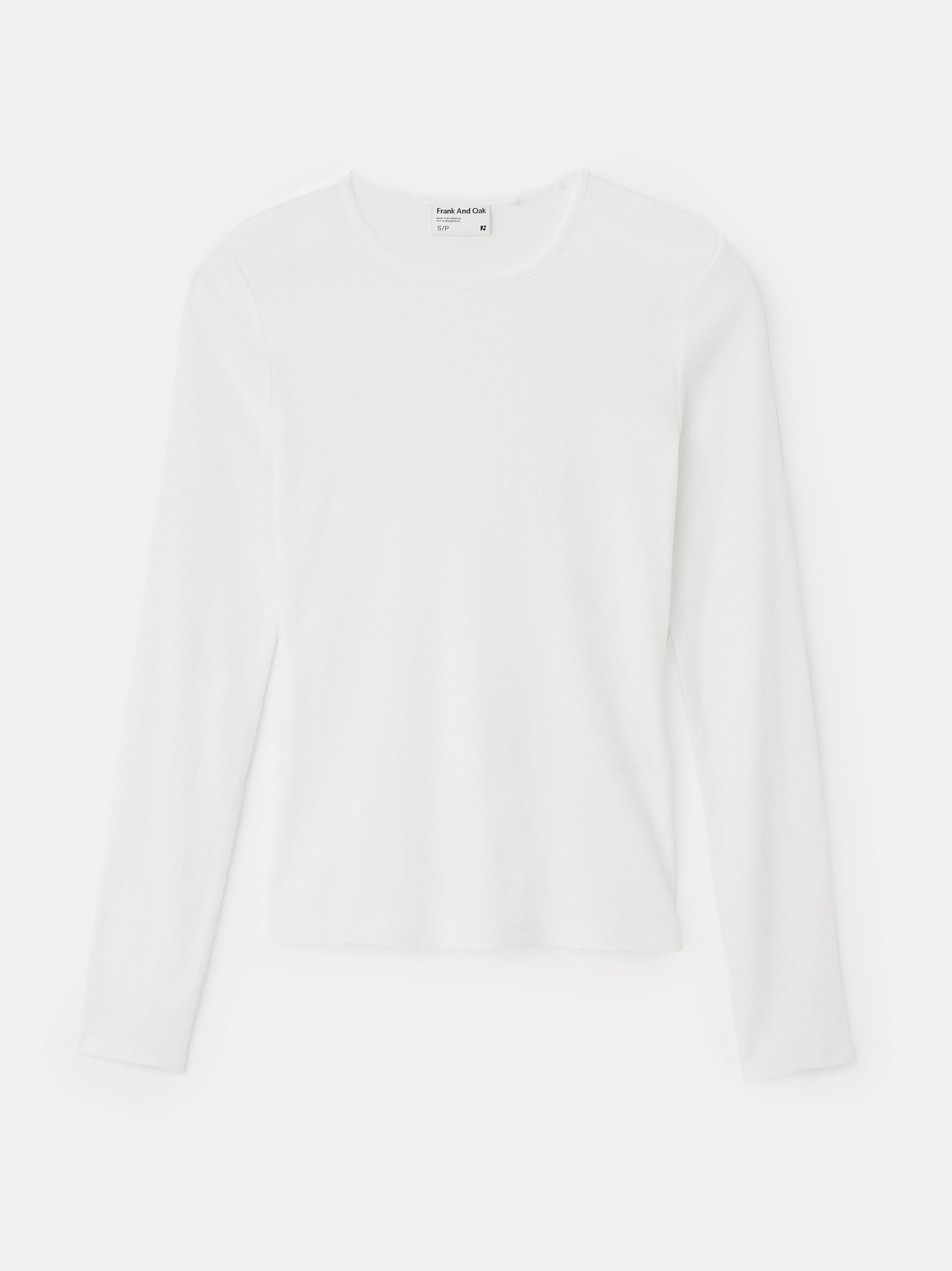A wardrobe staple. The slim ribbed long-sleeve top is made with a blend of organic cotton, TENCEL™ Modal, and a bit of stretch for easier moves. Long sleeves. Crewneck. Features a soft baby ribbed textured fabric.