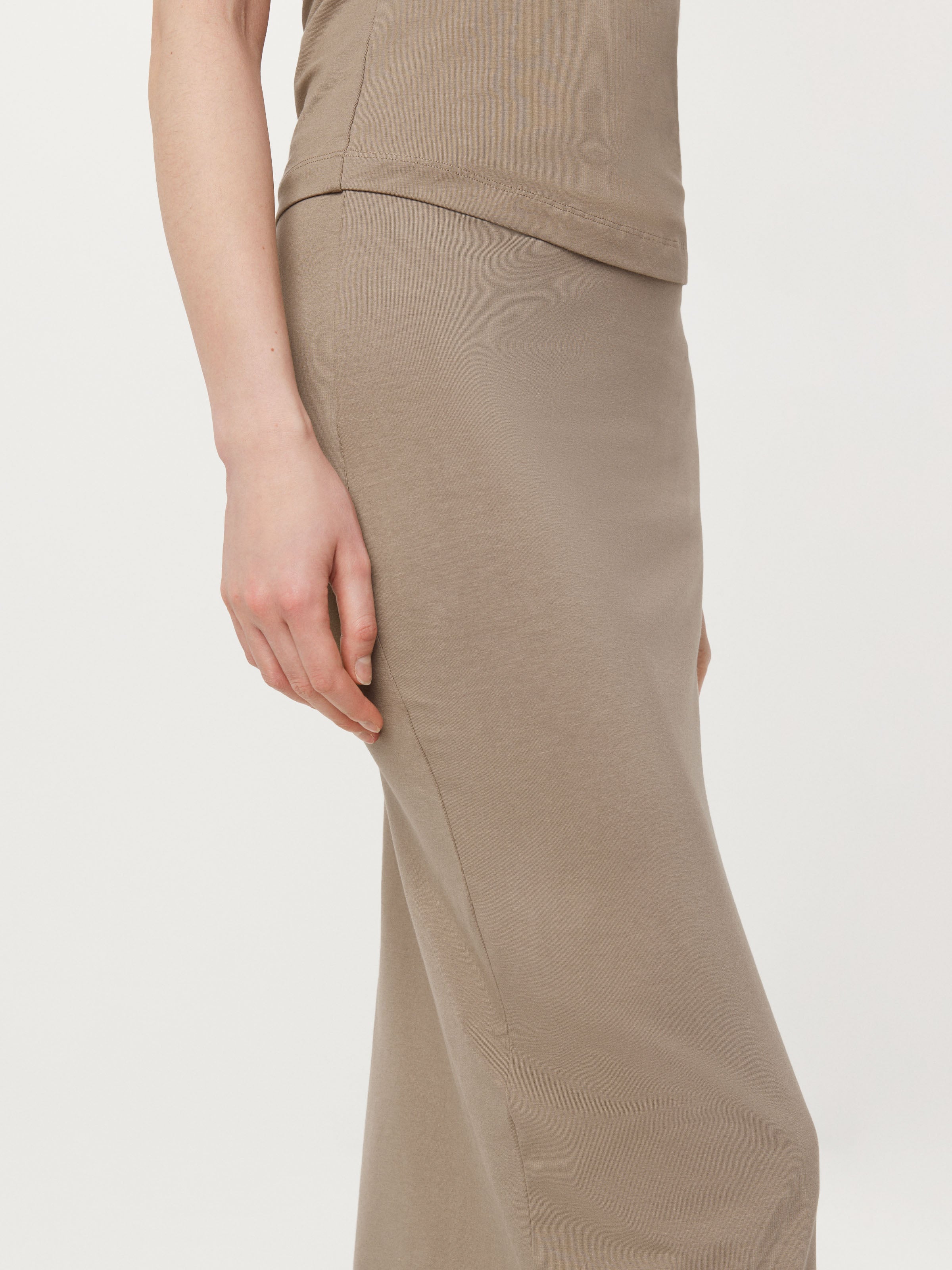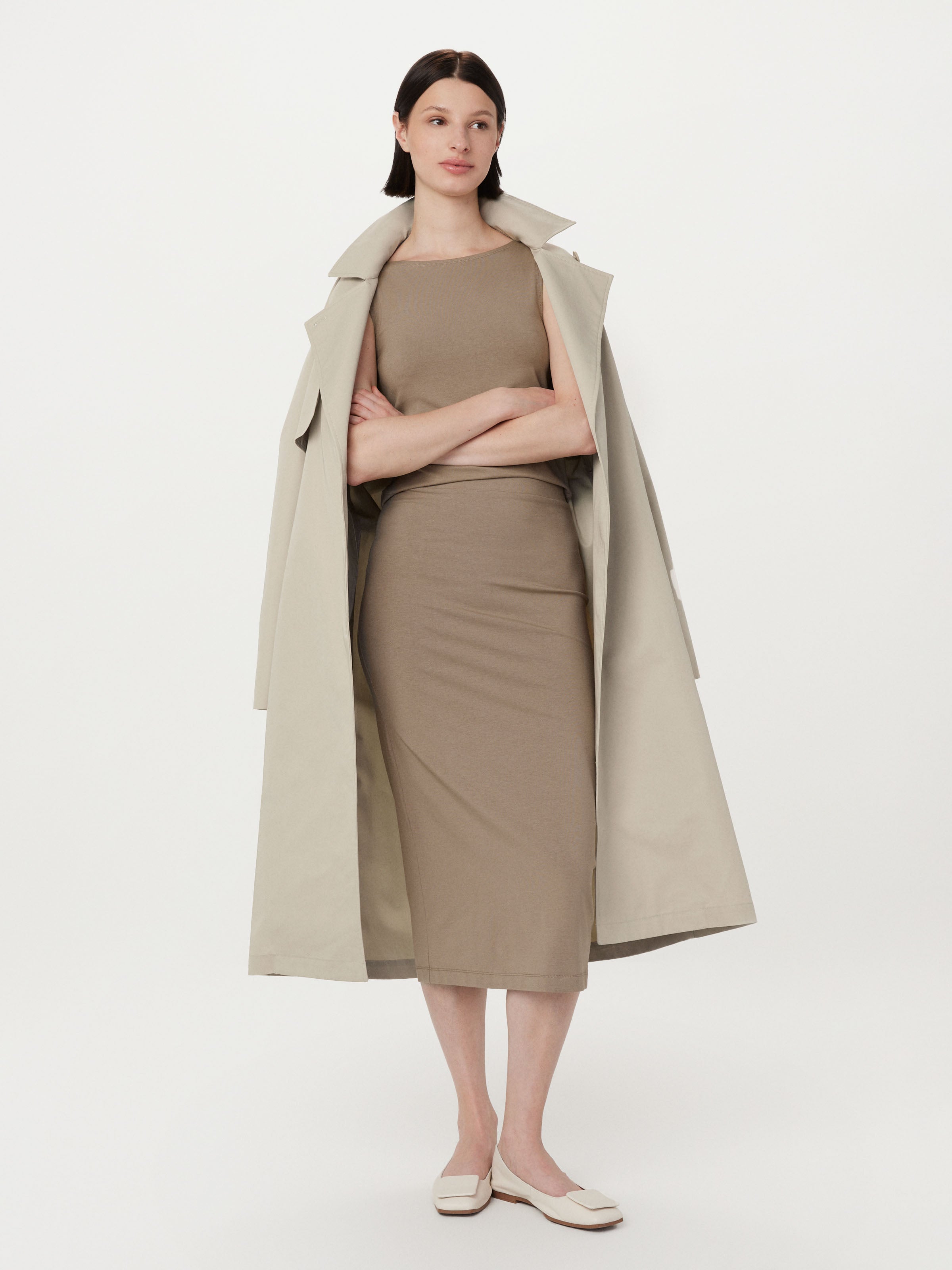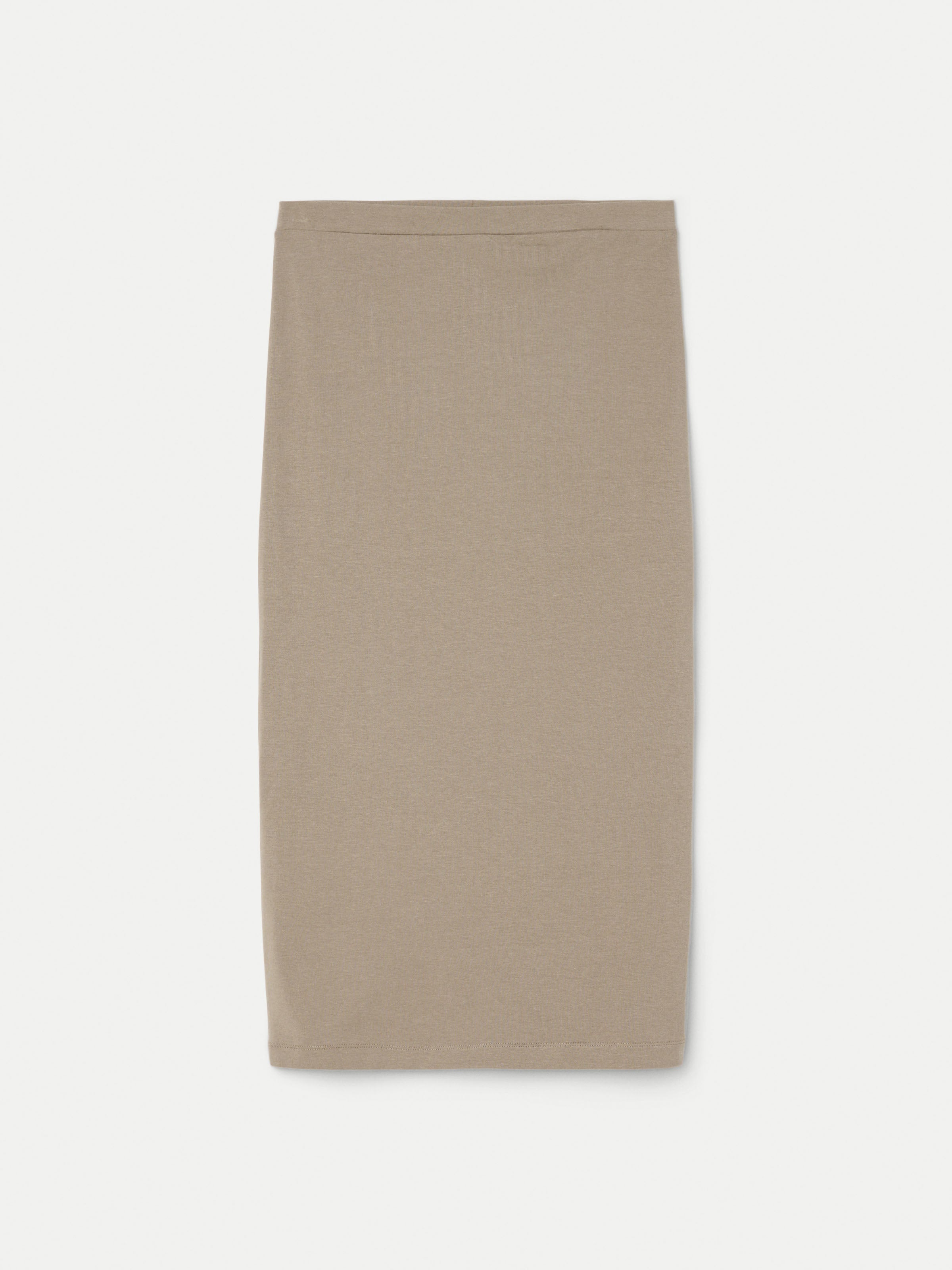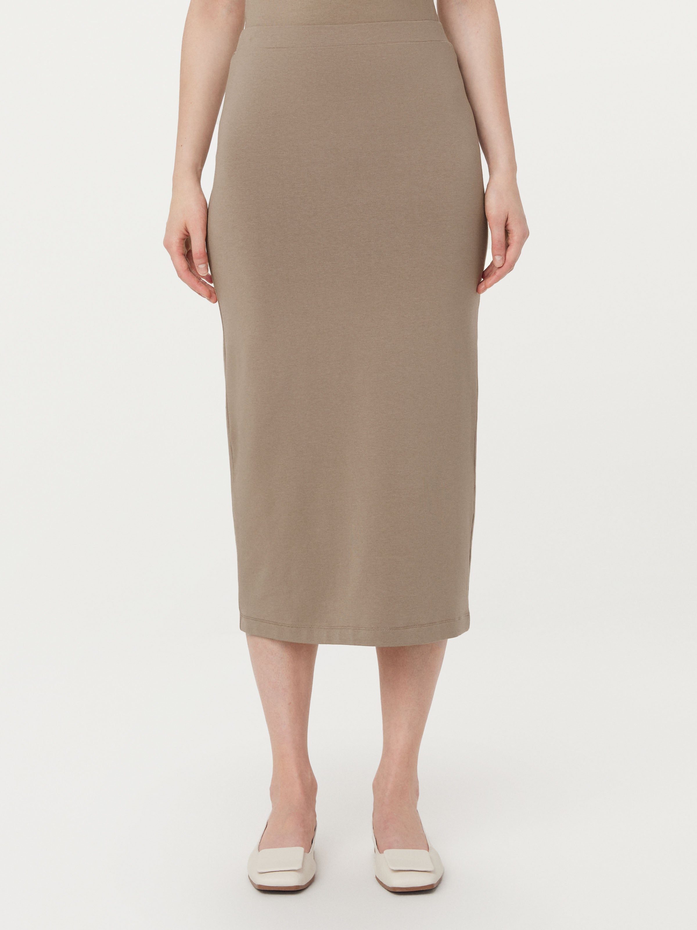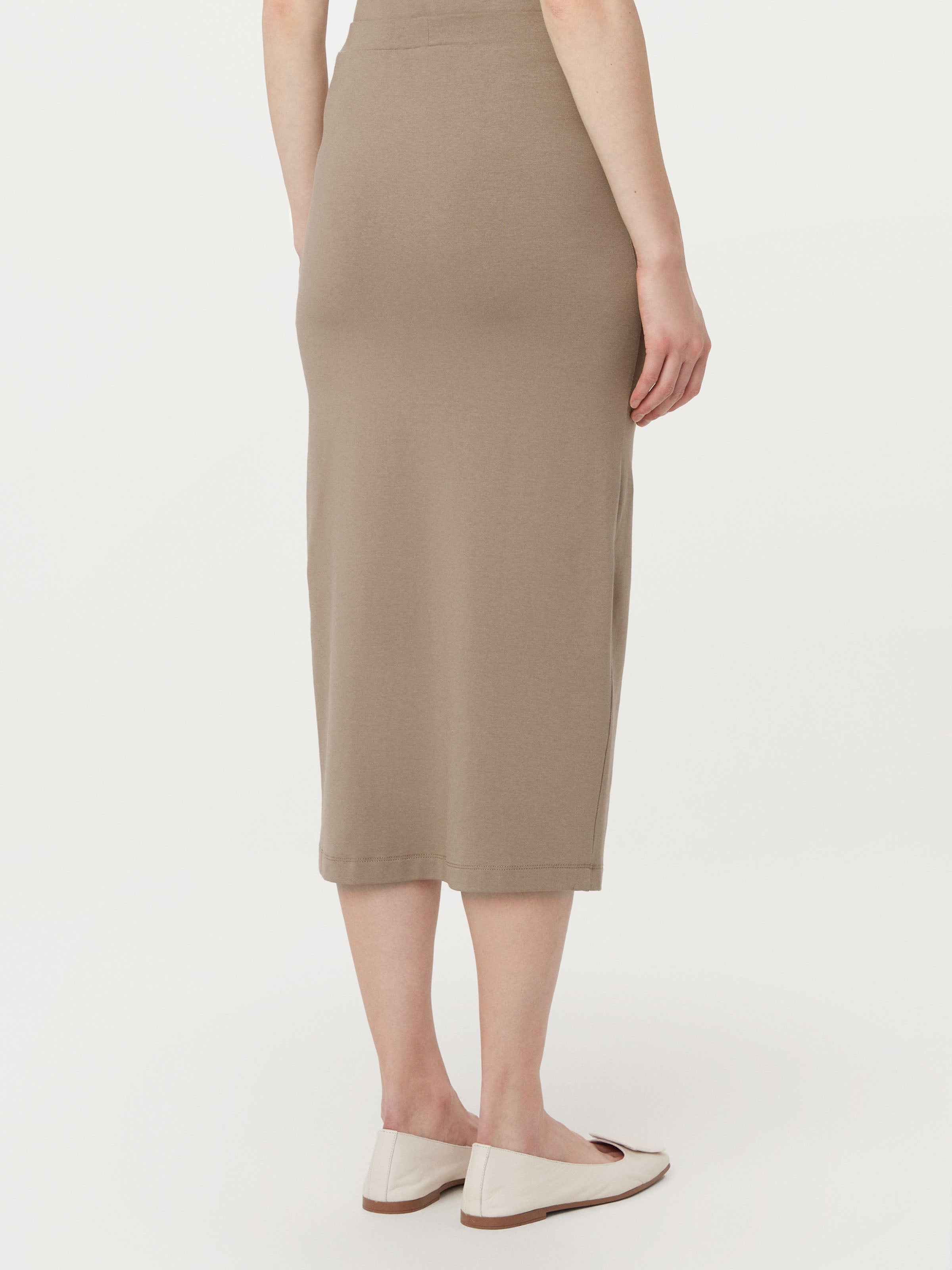 A core wardrobe staple. This midi skirt features a high waist, mid-calf length, and a slim, shaping fit. Made with a blend of organic cotton, TENCEL™ Modal, and a bit of stretch for added comfort.