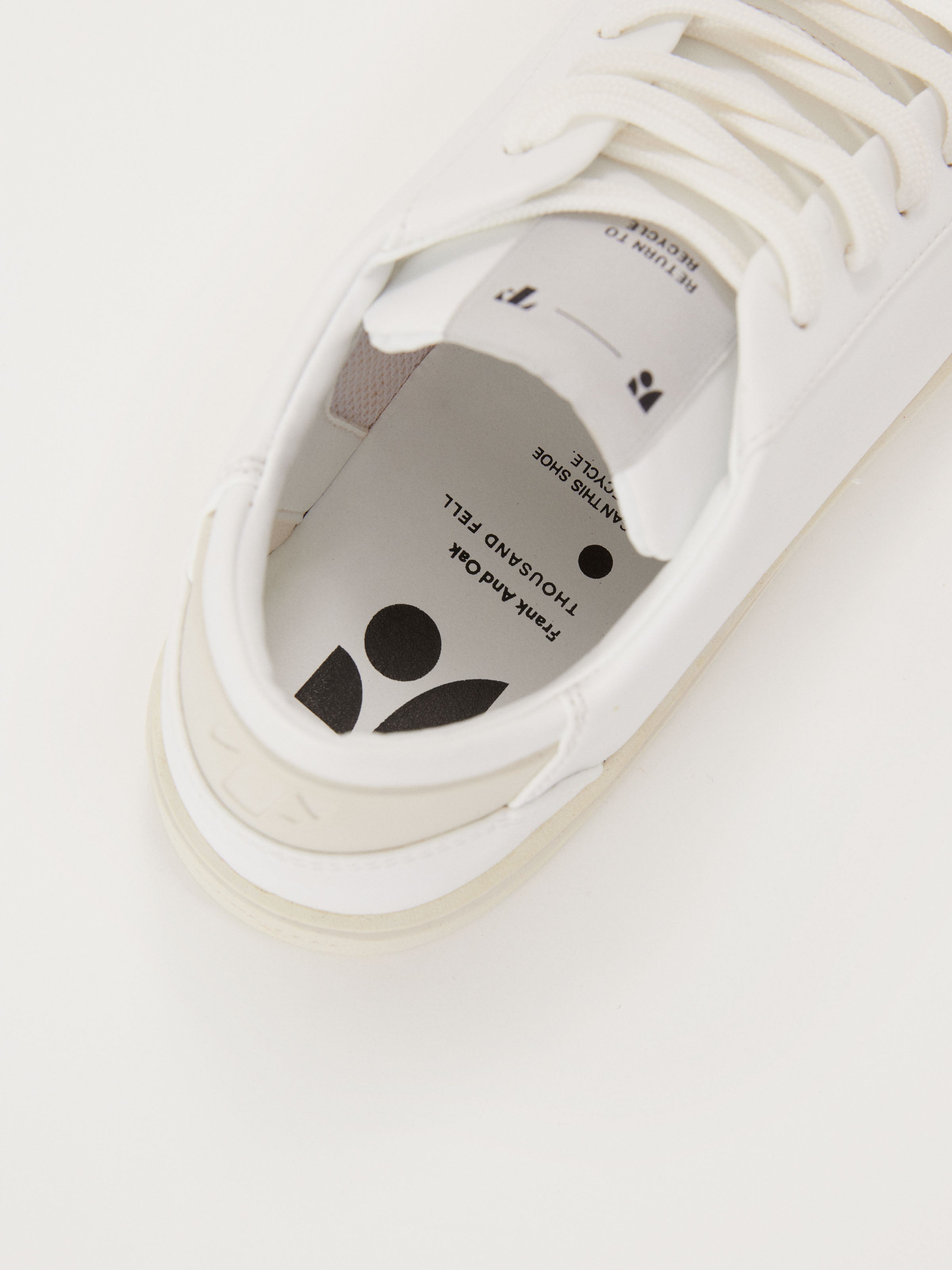 Introducing the Thousand Fell x Frank And Oak lace-up sneaker. You might be walking, but you're not leaving a carbon footprint behind. Features a durable and breathable upper with a stain-proof and water-resistant coating. Aloe vera mesh liner. Recycled PET tonal laces. Cushioned recycled rubber insole. Details made from coconut, sugarcane, and palm.