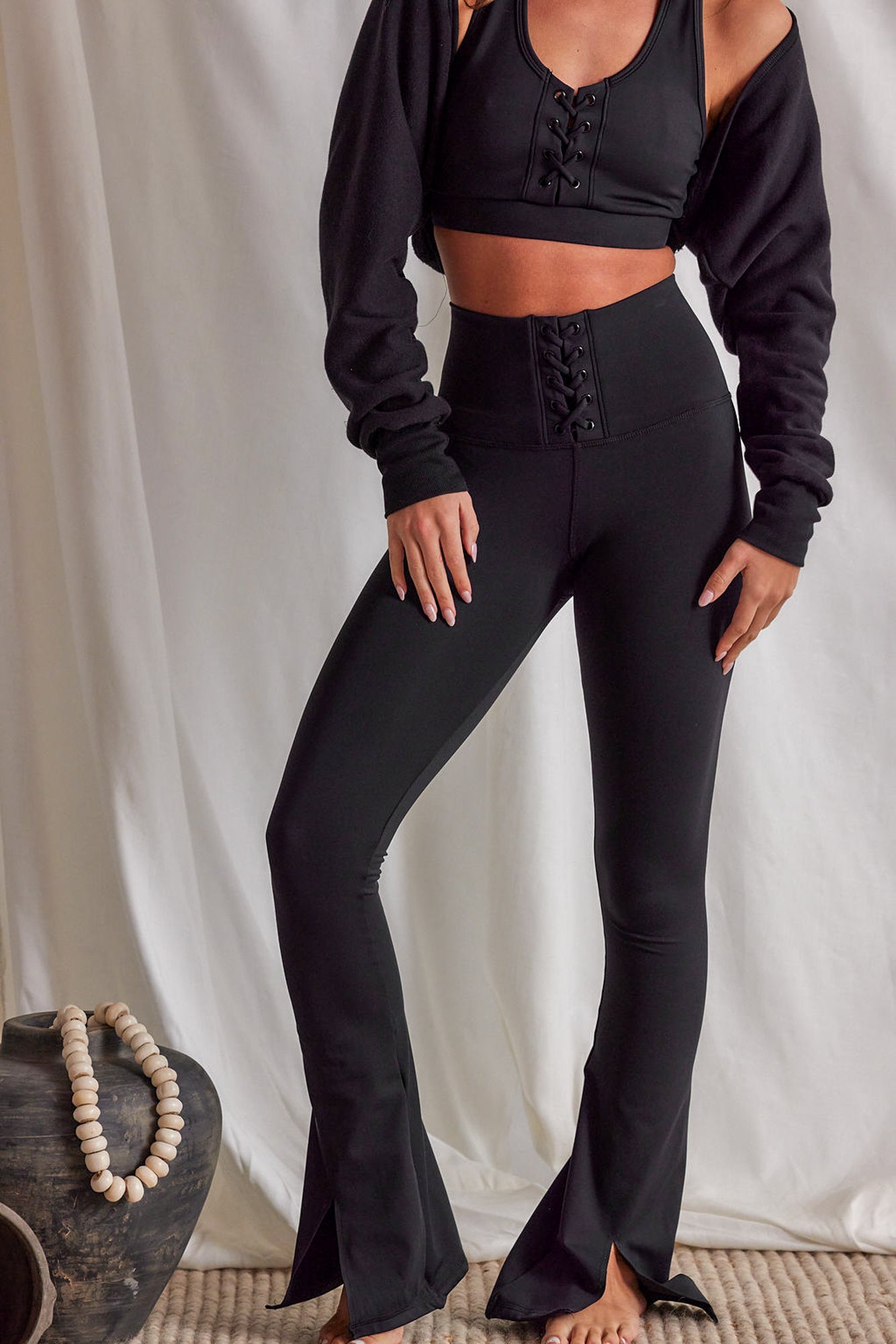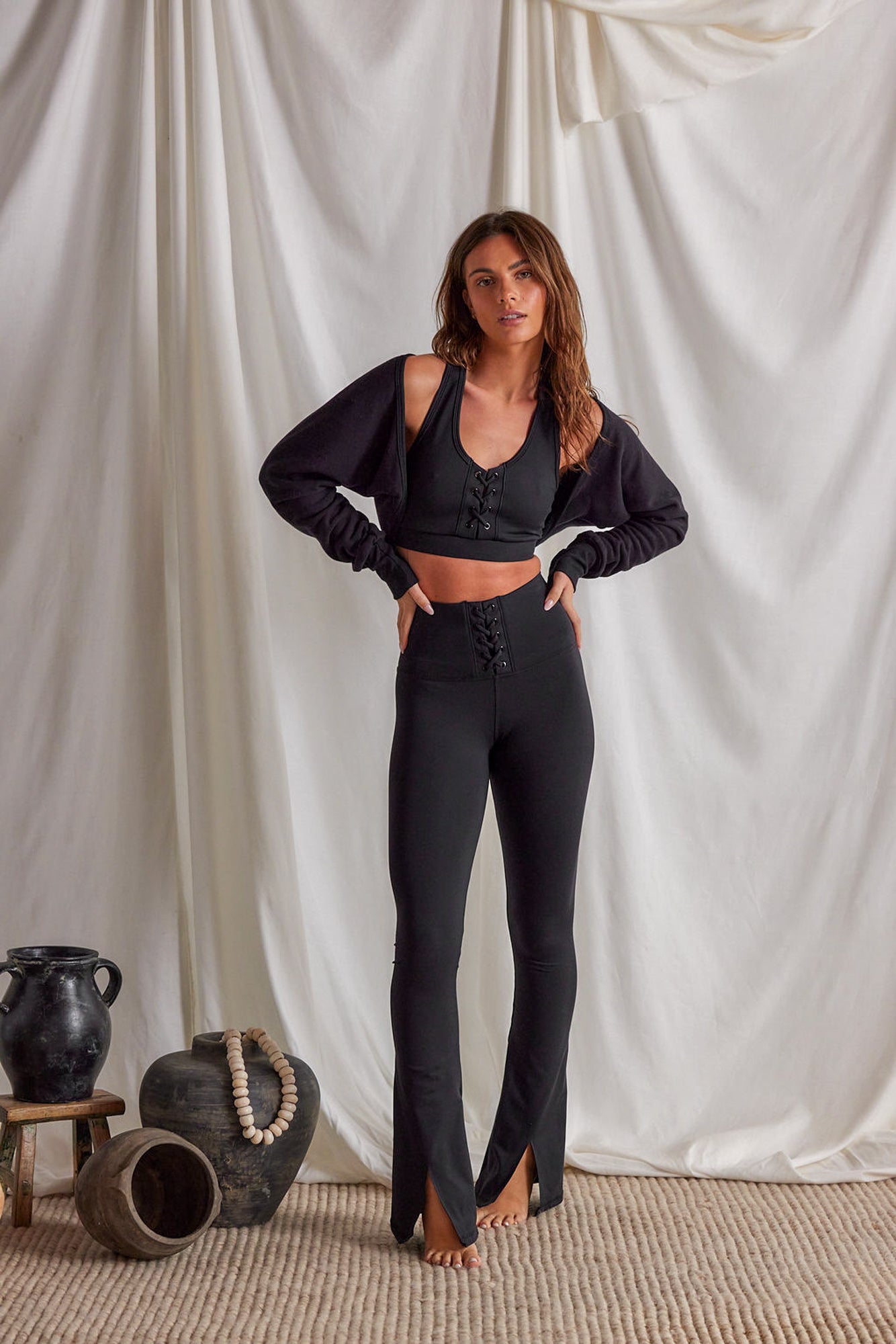 Meet the Shrug! This is the perfect throw on shrug with long arms. cuffs. and a crop back.