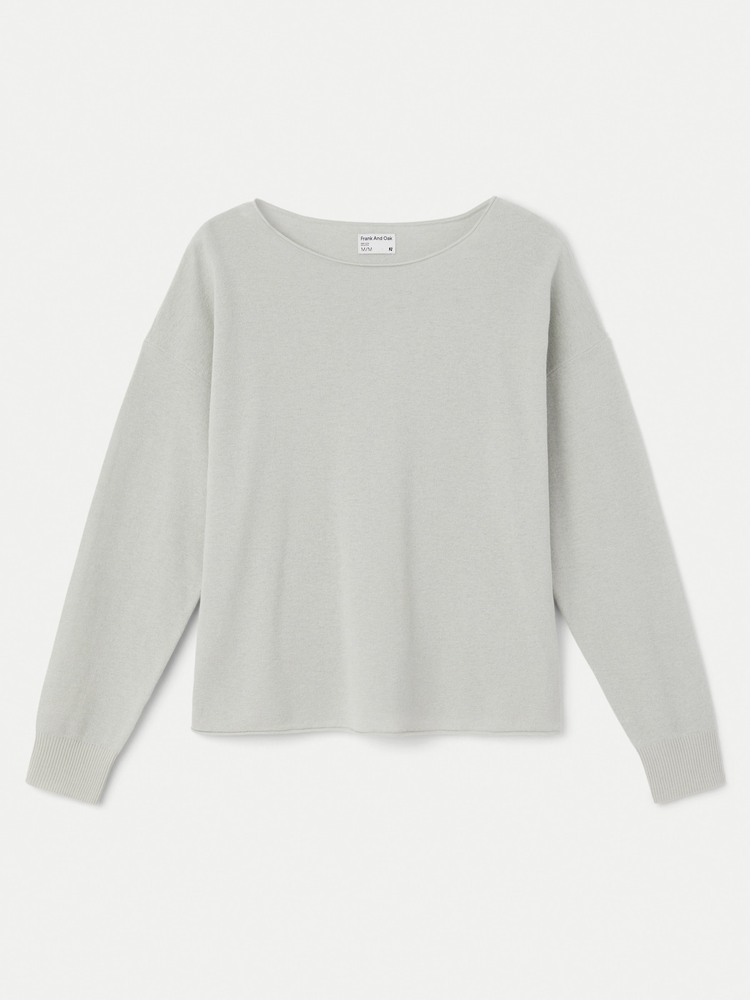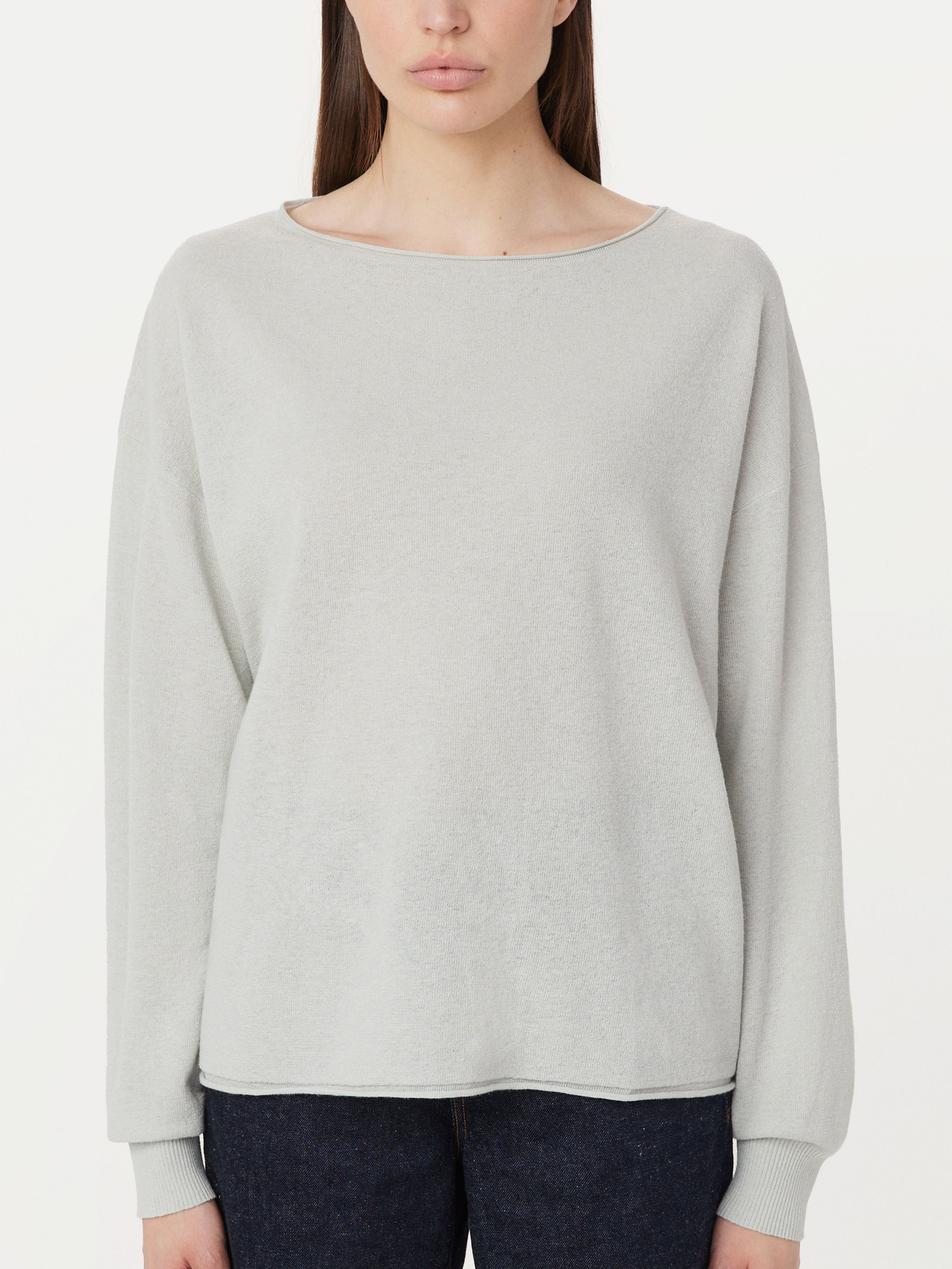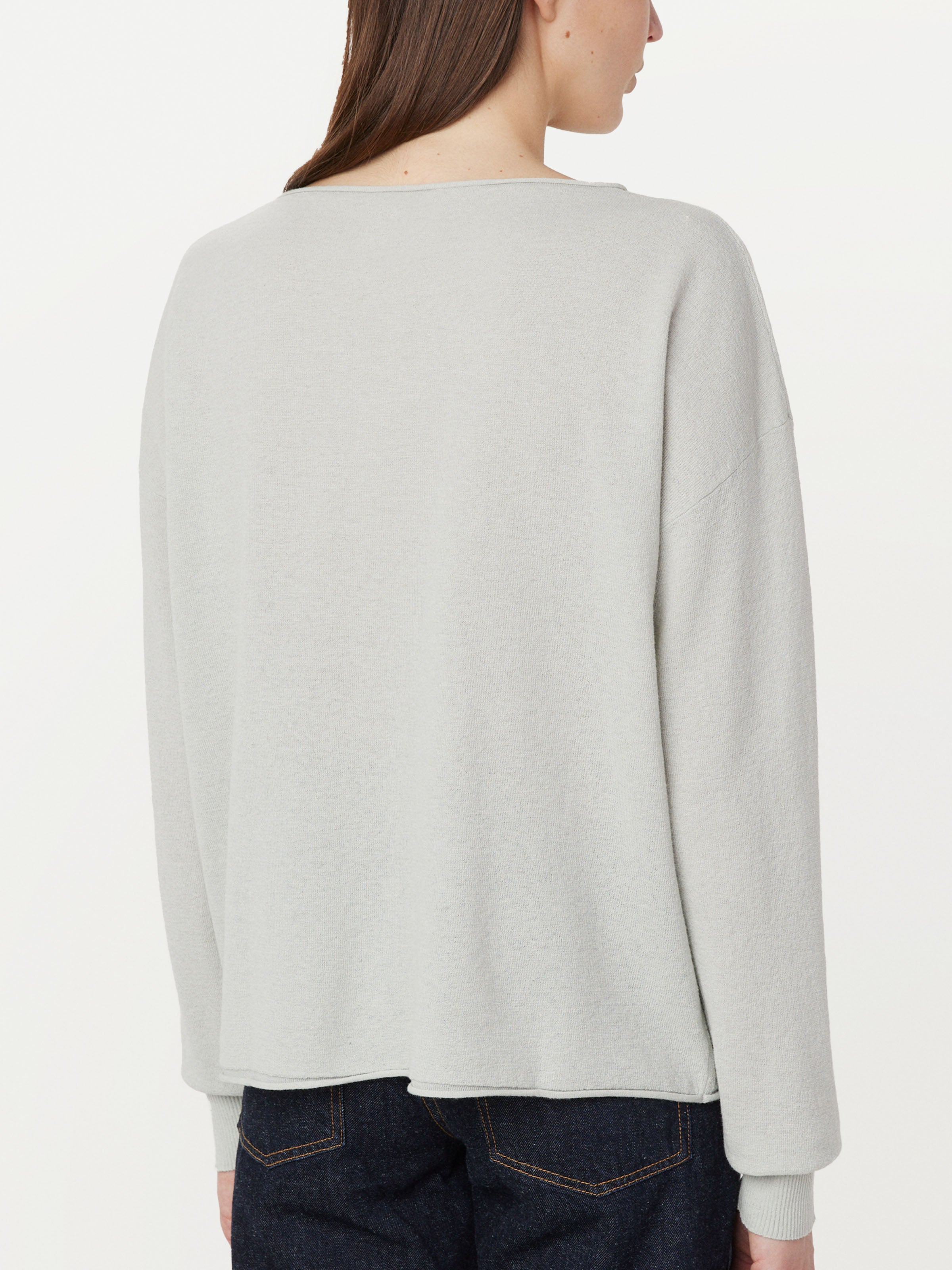 Elevate the everyday. This fine yarn sweater is ideal for the spring and summer months. Made with a blend of organic cotton, linen, and recycled materials. Relaxed fit. Features a slightly see-through fabric. Crewneck. Long sleeves.