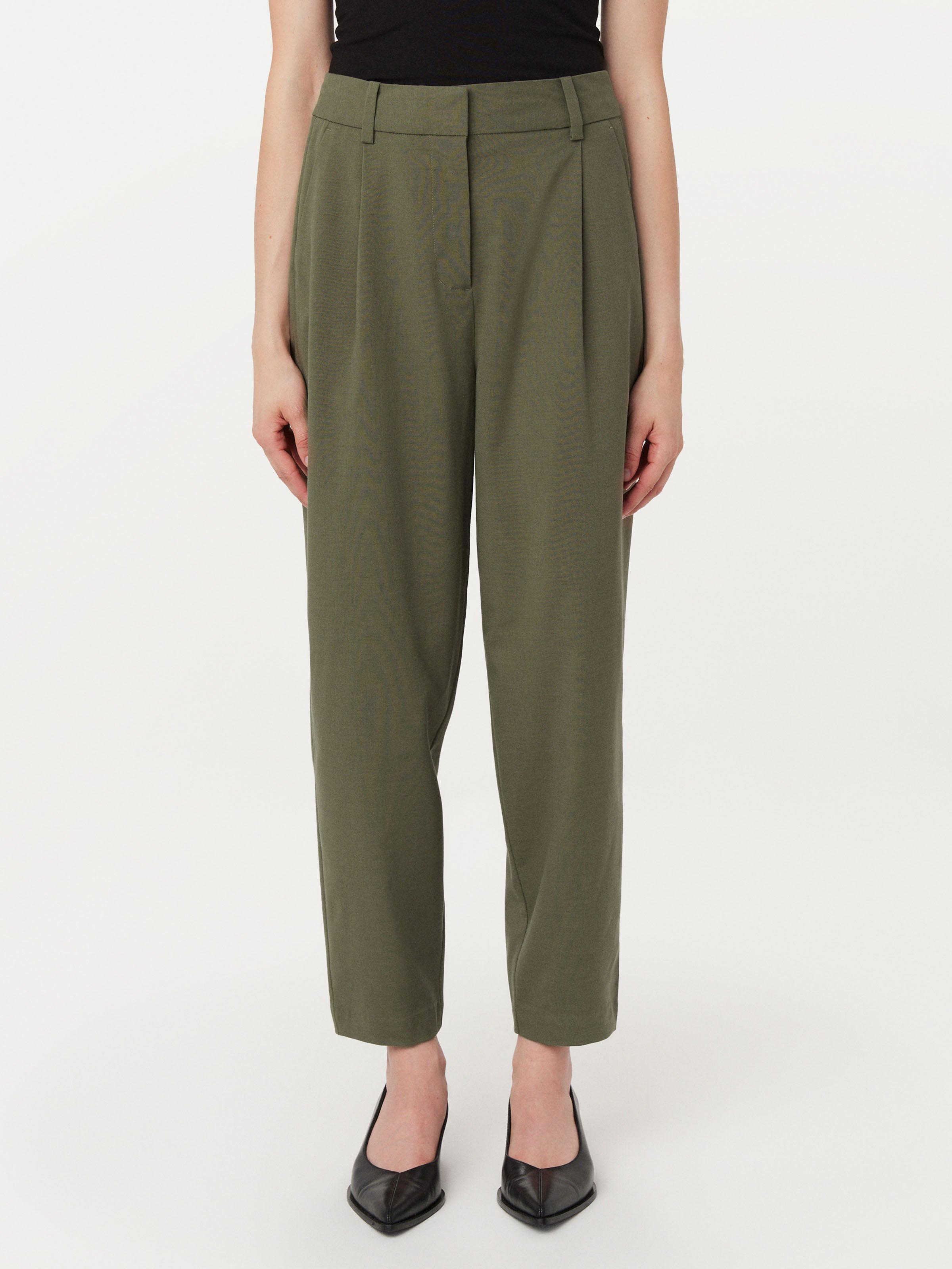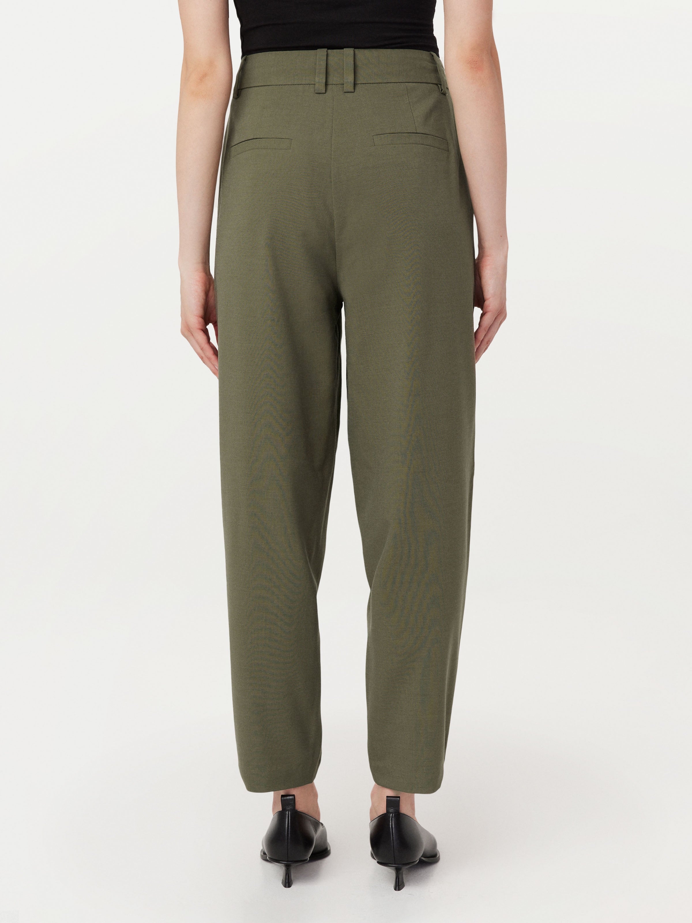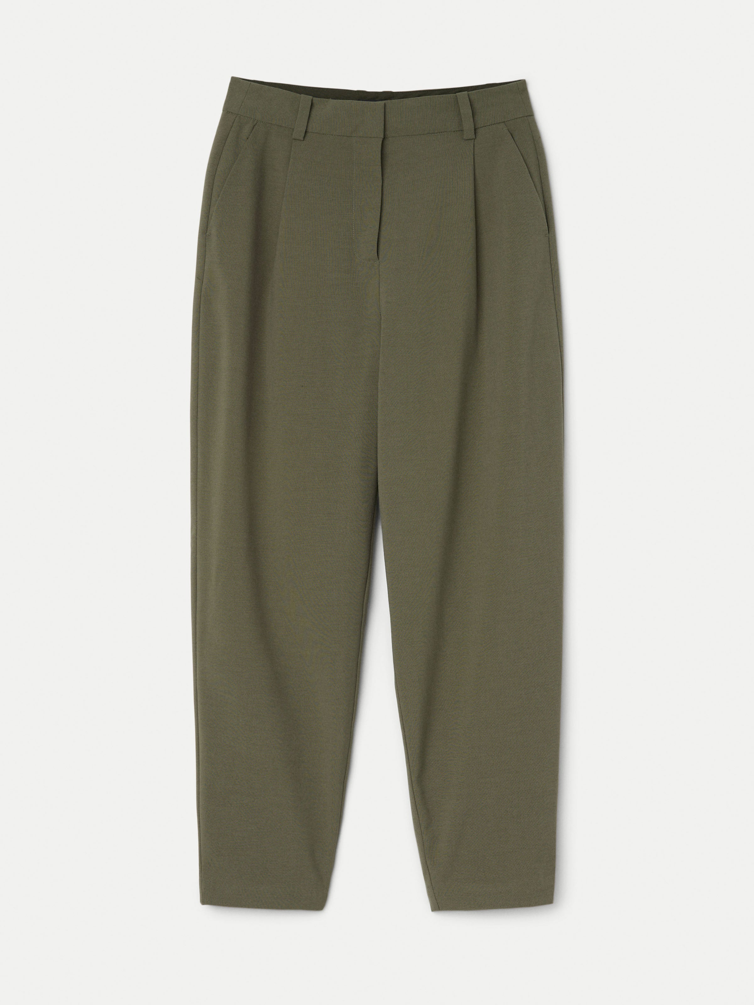 Made with a blend of responsible fibres, wool, and a bit of stretch for easier moves. Slash pockets at the front and fake welt pockets at the back. Hidden pocket inside the waistband. Front closure zipper. Recycled button. Belt loops at the waistband. Machine washable.