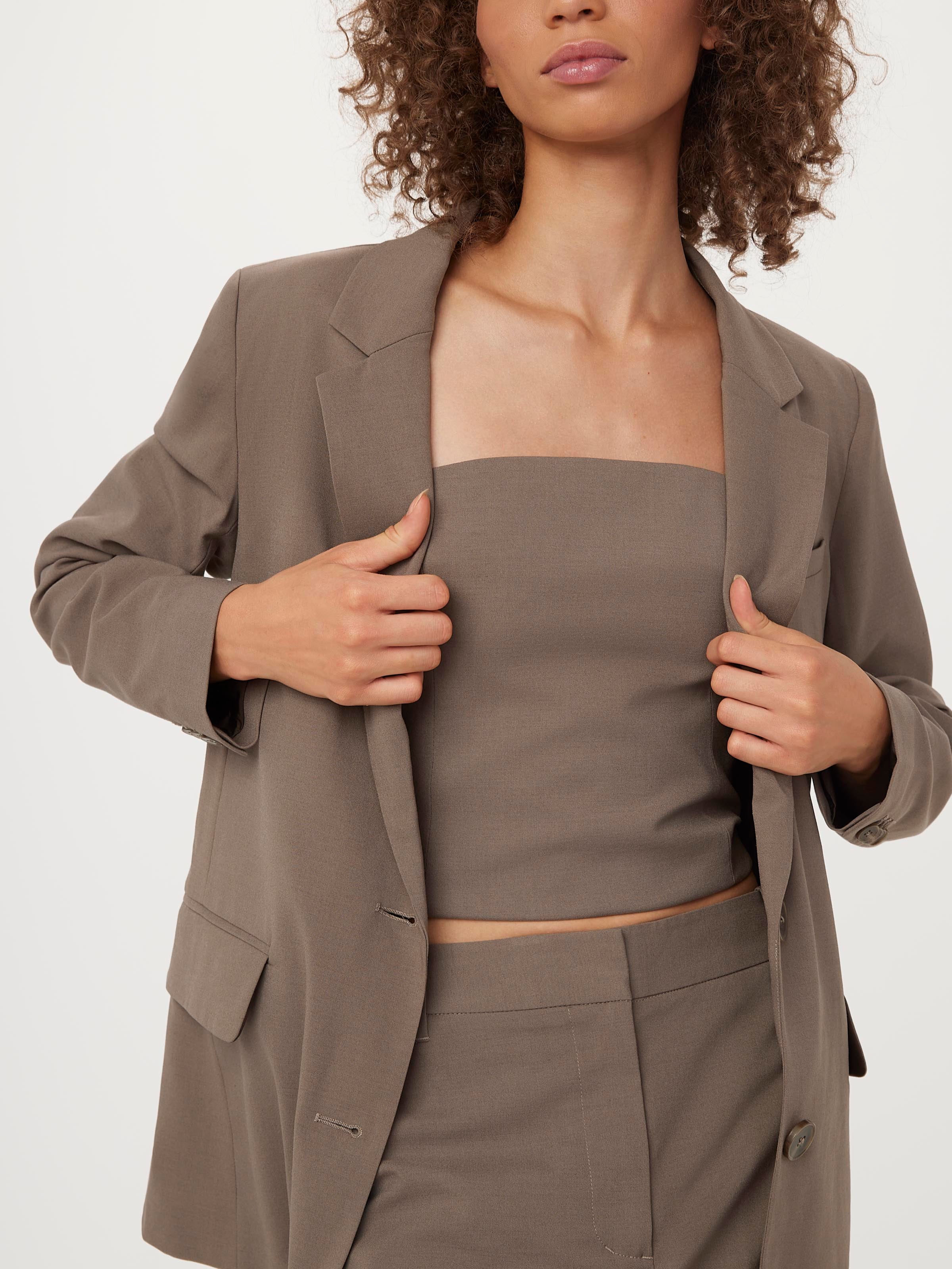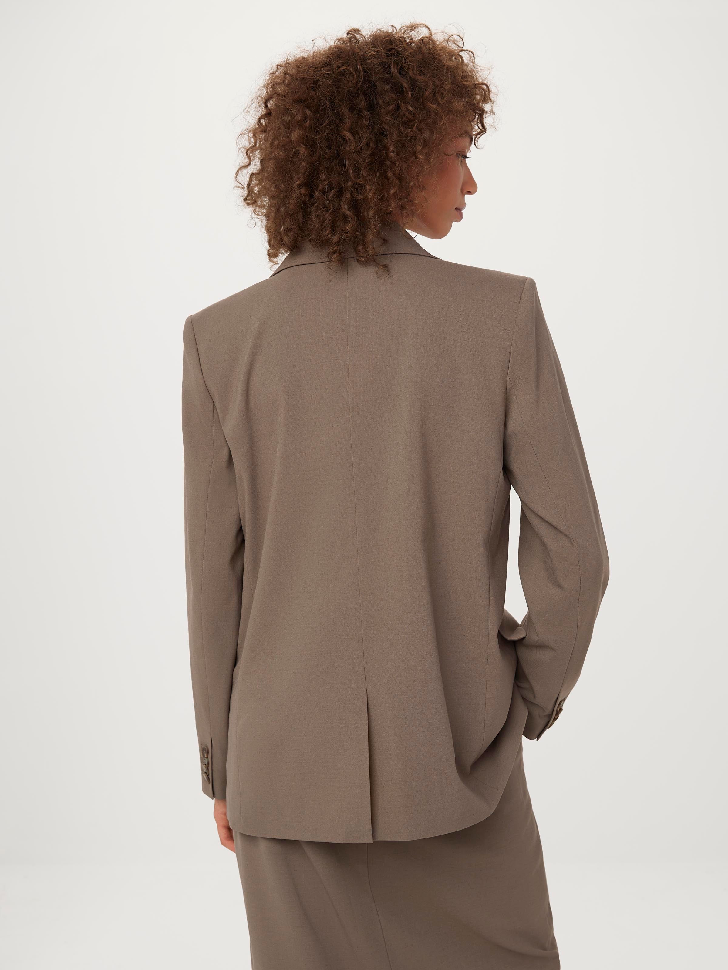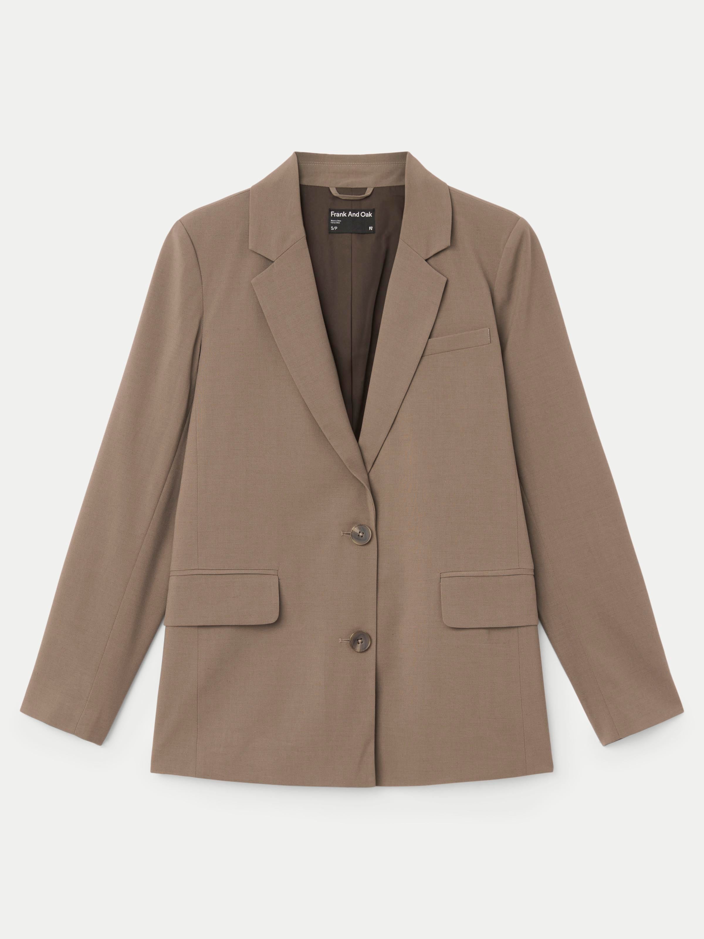 Elevate the everyday. This single-breasted blazer is made from a structured fabric in a blend of recycled polyester and wool. Relaxed fit. Notch lapel. Flap pockets. Twill lining.