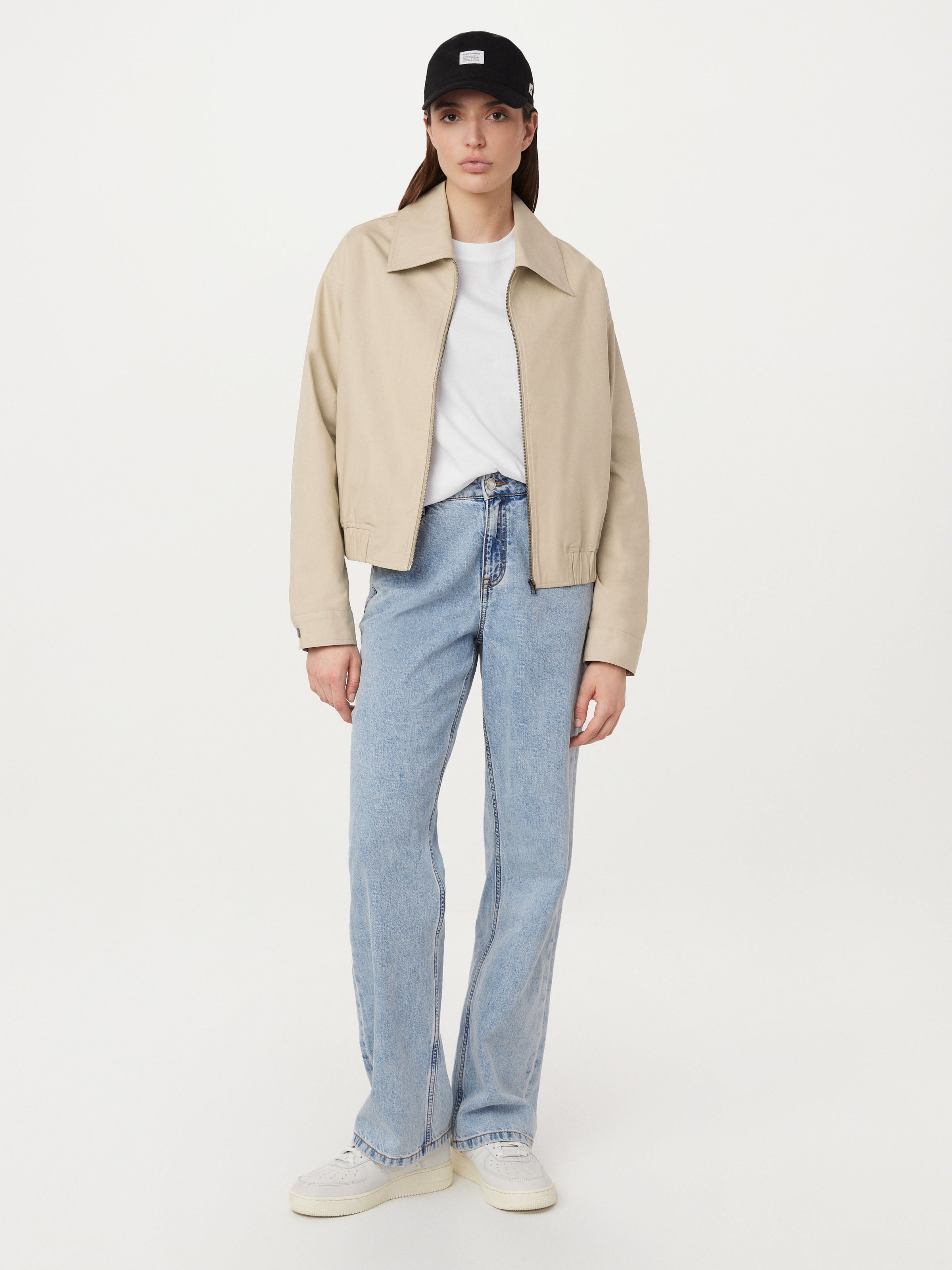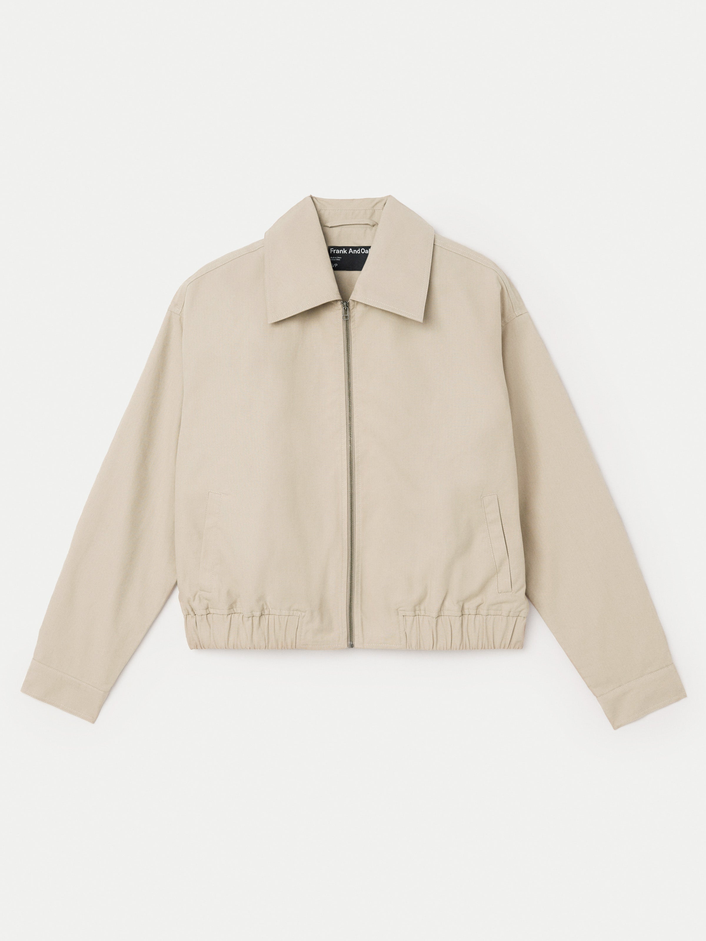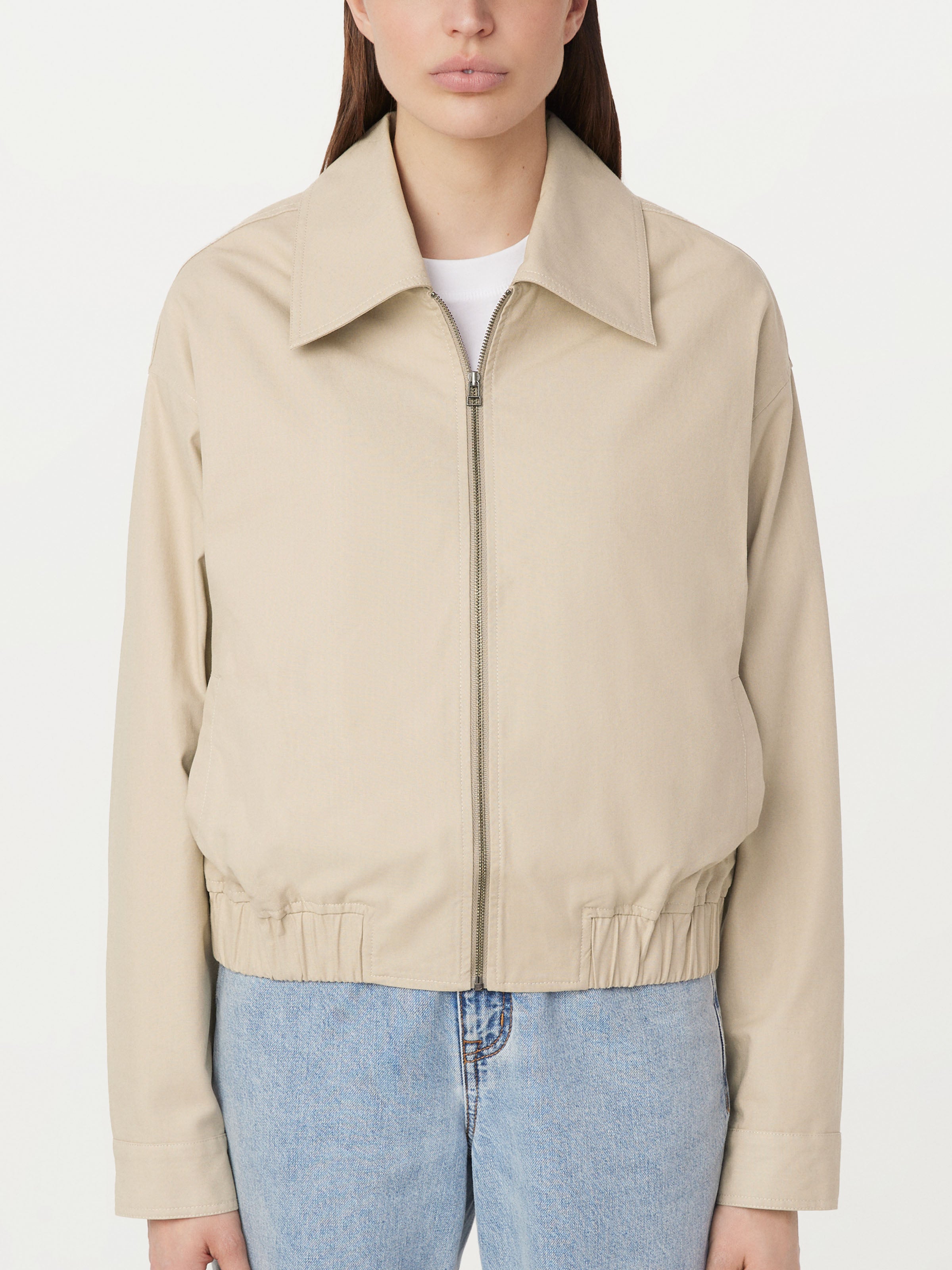 The Zip Up Bomber Jacket in Light Beige