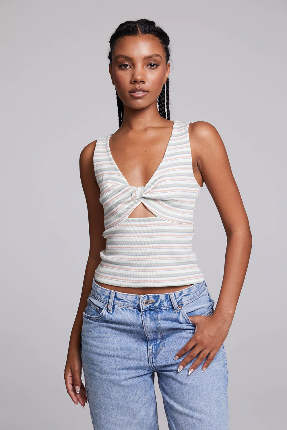 Our comfy recycled vintage rib Serra Mini Dress features stretch and a front twist.